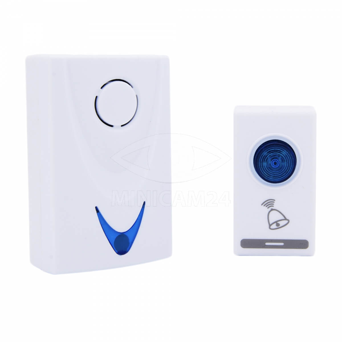 Устанавливается в квартире или офисе при отсутствии возможности проложить проводной звонок. Девайс отличается простым монтажом: не нужно сверлить стены, достаточно закрепить его с помощью липкого снования рядом с дверью. Звонок работает на расстоянии 100 м. Пользователь может сам выбрать одну из 32 предложенных мелодий. В качестве источника питания выступают батарейки. Устройство имеет лаконичный дизайн, легко впишется в любой интерьер.